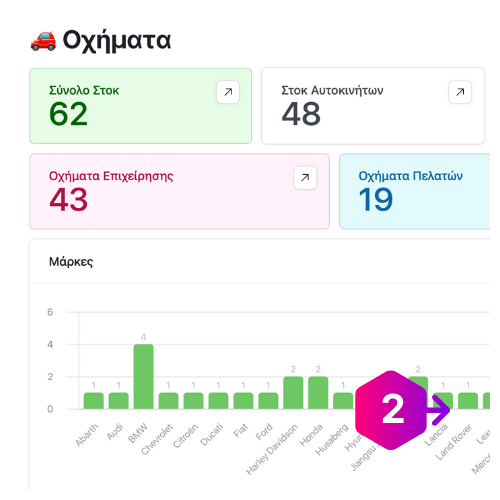 Αξιοποίησε τη δύναμη του Car Manager για να προσελκύσεις περισσότερους πελάτες και να κλείσεις περισσότερες συμφωνίες. Το εργαλείο σου για μεγαλύτερη επιτυχία στις πωλήσεις.