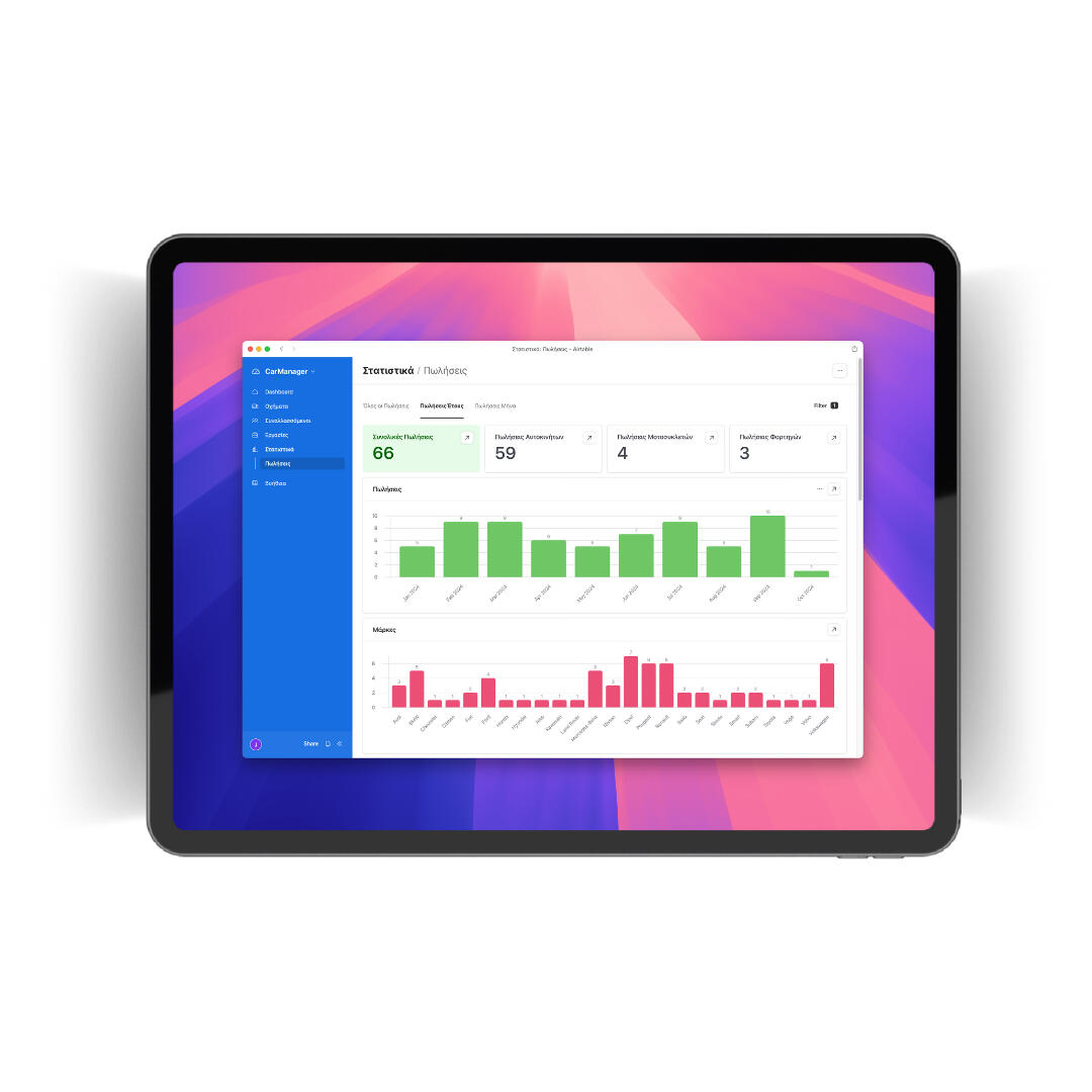 Αξιοποίησε τη δύναμη του Car Manager για να προσελκύσεις περισσότερους πελάτες και να κλείσεις περισσότερες συμφωνίες. Το εργαλείο σου για μεγαλύτερη επιτυχία στις πωλήσεις.